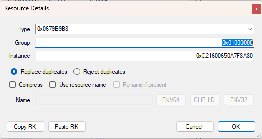 6.5 If the smallest file is bigger than that or not even an UNKN resource, then it's probably a self-created Lot/Household. In that case, you will need to import the missing resource from another Lot/Household file which has been installed instead of created by yourself. Open that file with s3pe. Then do the same steps as above until you find the correct resource. Then right click on it, pick "Export", then pick "To package...". Then find the file you wish to have this resource in and choose it.