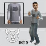 I'm in search of the hair sported by the boy wearing outfit number 5 in
