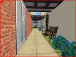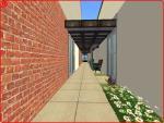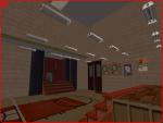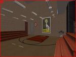 Edit because I almost forgot: The design on the side of the gymnasium was a bit of a dilemma because I wasn't finding anything in the game that really looked like that, so I went with downspout pipes to simulate that. Other ideas I had were to put one square pieces of wall protruding out to simulate it, or to use one of the wallpapers that has borders. Any thoughts?