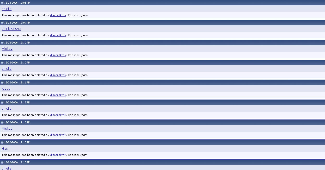 Discord displays her skills in the 2006 Simlympics Spam Deletion tournament hosted at S2C.